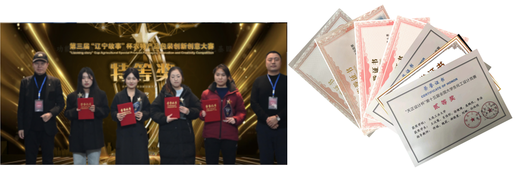 图4 辽宁故事”杯农特产品包装创新创意大赛及部分比赛证书