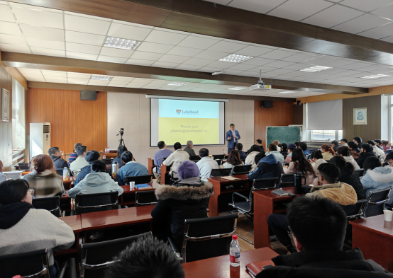 Pedram Fatehi教授首先简要介绍了加拿大湖首大学的办学特色、学科优势及在生物质资源开发与绿色加工领域的研究成果。作为国际木质纤维生物质资源绿色开发技术领域的资深学者,他指出,基于制浆造纸工业的木质素副产品的高值化创新应用是推动传统行业升级的重大机遇。并结合木质素科研前沿,详细阐述了木质素来源、化学结构、均质性等基础科学问题对纳米木质素颗粒的组装、稳定性及功能化影响。通过案例展示了木质素纳米颗粒在新型环保涂料、黏合剂、化妆品和生物塑料等领域中的广阔应用前景。在互动环节中,参会人员踊跃提问,Pedram Fatehi 教授认真解答了师生在专业研究中遇到的困惑,鼓励同学们夯实知识基础、敢于尝试创新。