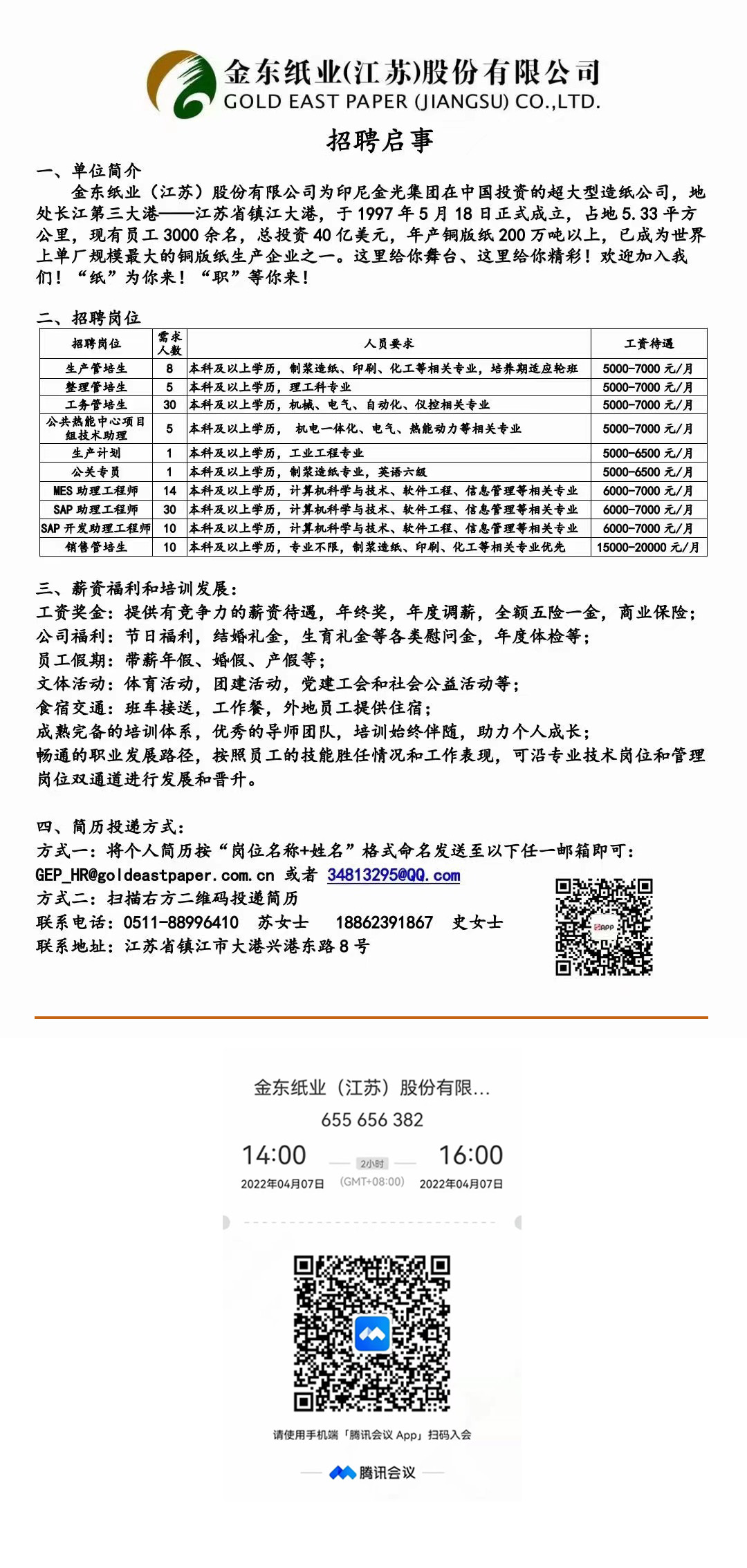 4月7日金东纸业在线校招相关信息