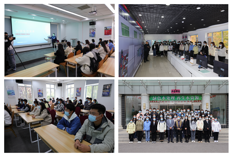 在大连恒基新润水务有限公司,工作人员带队参观了水博士课堂展厅、再生水展厅及生化池、二沉池等专业设施设备,并为学生们就环保行业就业形势进行了授课讲解。