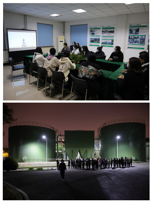 在大连东泰有机废物处理有限公司,工作人员对公司厂区进行了整体介绍,并在厂区布置、工艺单元分布、运营流程等方面进行了详细讲解。在会议室,学生与工作人员进行了互动交流。